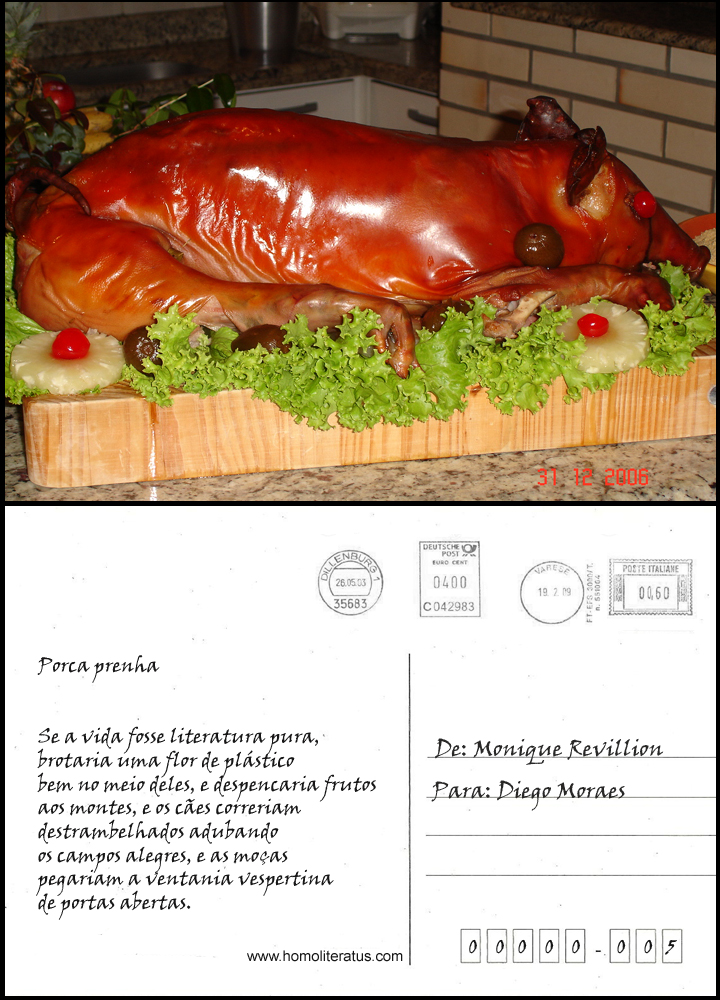 Série Postais – Porca prenha // Remetente: Monique Revillion, Destinatário: Diego Moraes